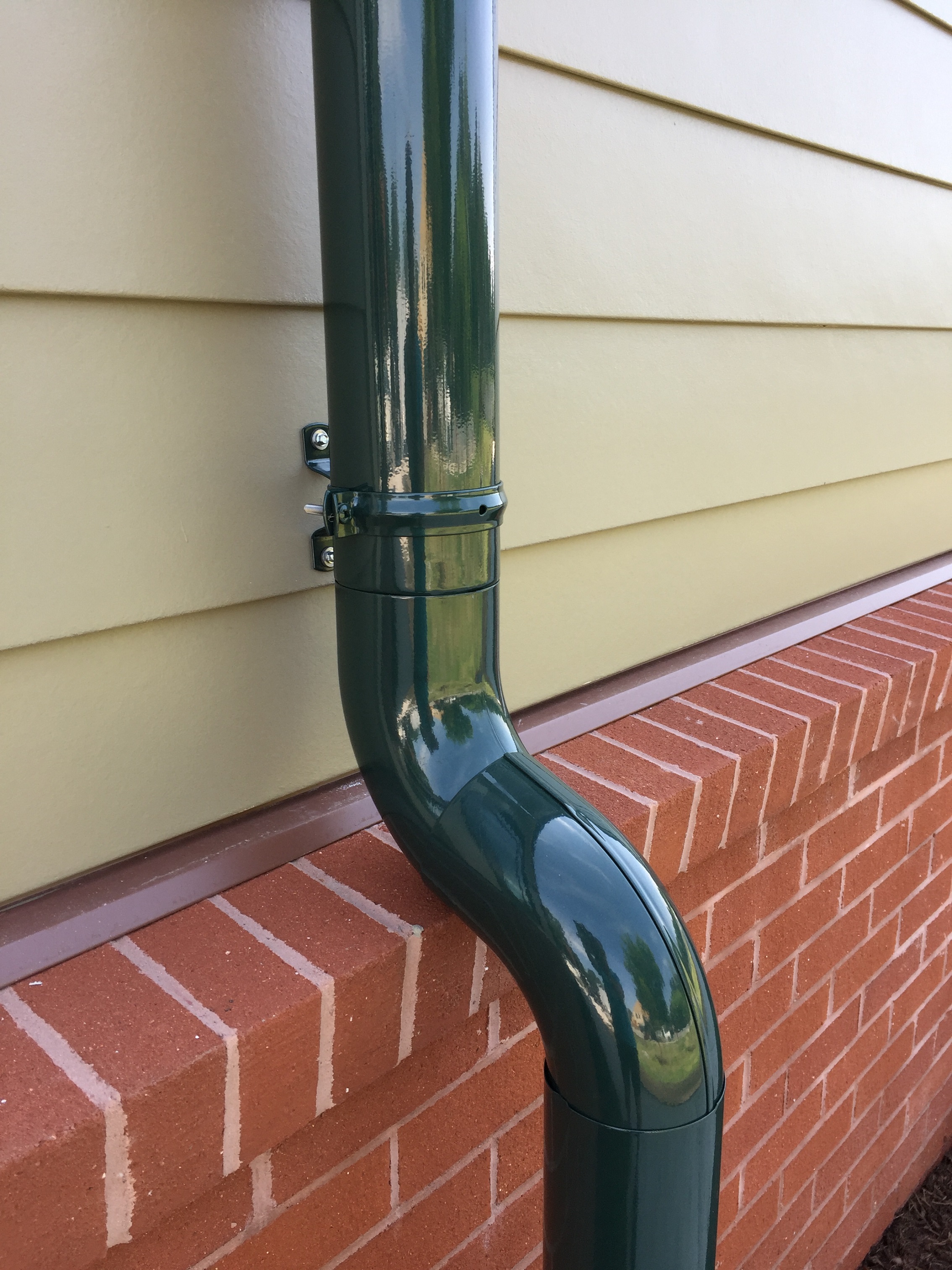The dark green color was powder coated onto the products. They all connect down to leaf chutes at the bottom. Guaranteeing that nothing will clog the underground drainage.