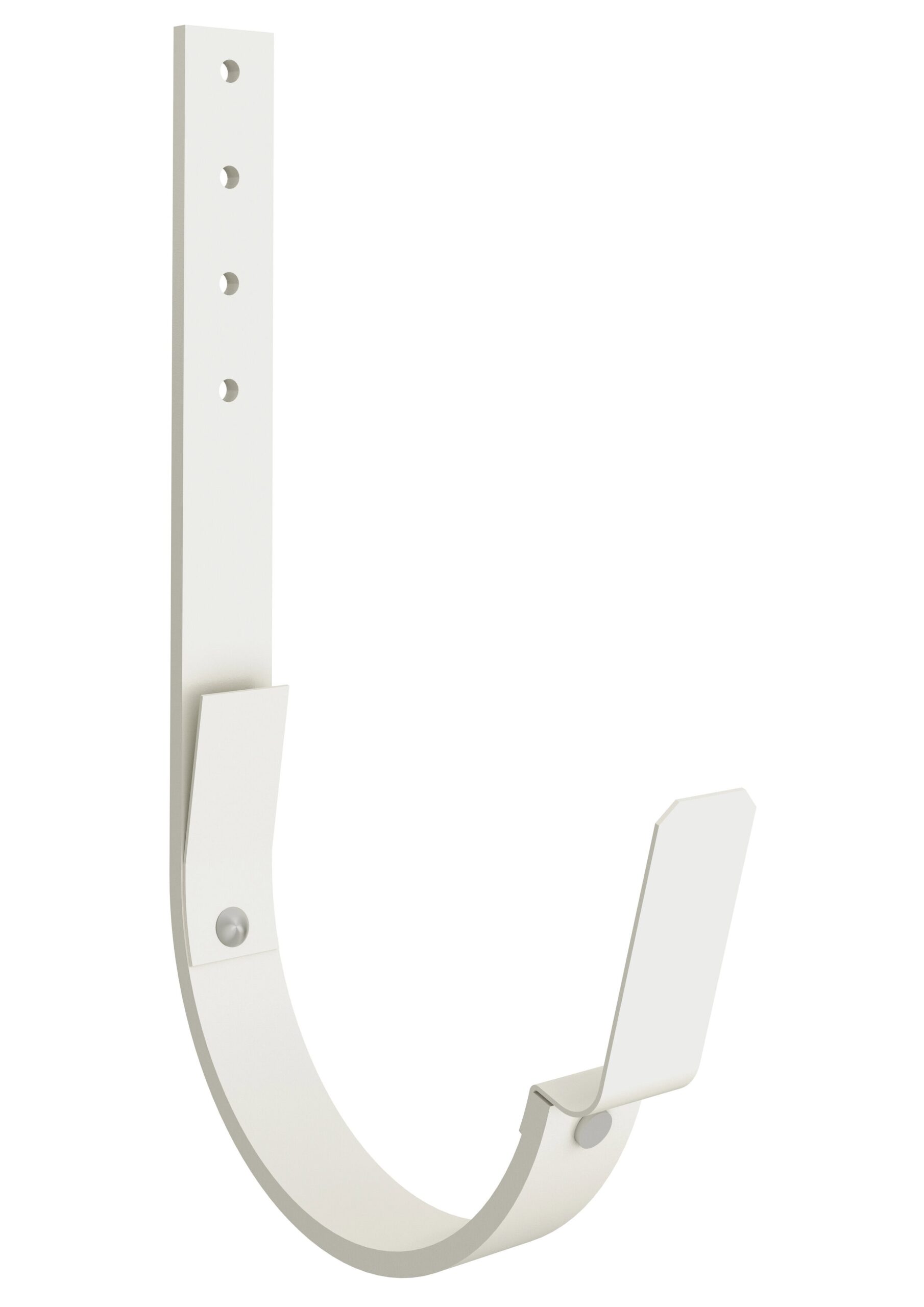 This hanger is designed for on the roof installation. If you lack a fascia board, or have a steep roof pitch, a roof mounted hanger is recommended. Most of our hangers are made of the same material. With steel being 1" thick and 1/5" wide, these hangers are super strong. You need to use a hanger bender to bend the shaft to the correct angle. It is a quick installation where you place the back edge of the gutter into the hanger, and simply push the bead in and down into place. The hanger follows the gutter beautifully.